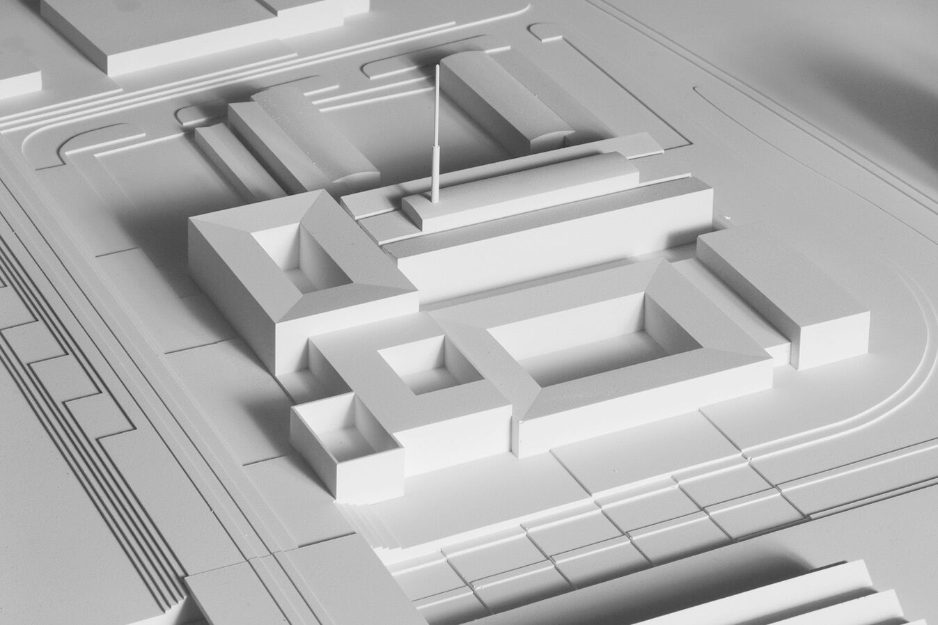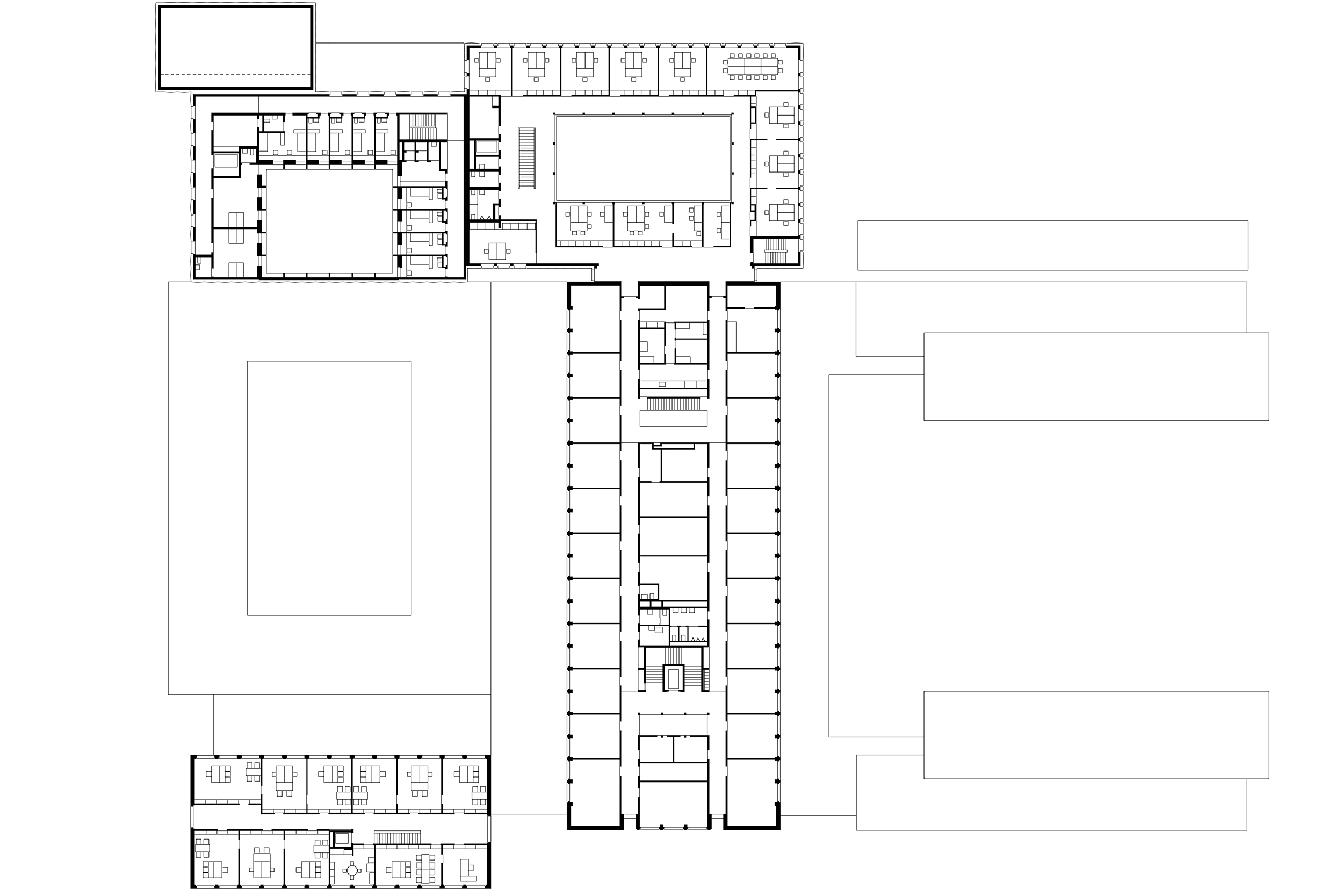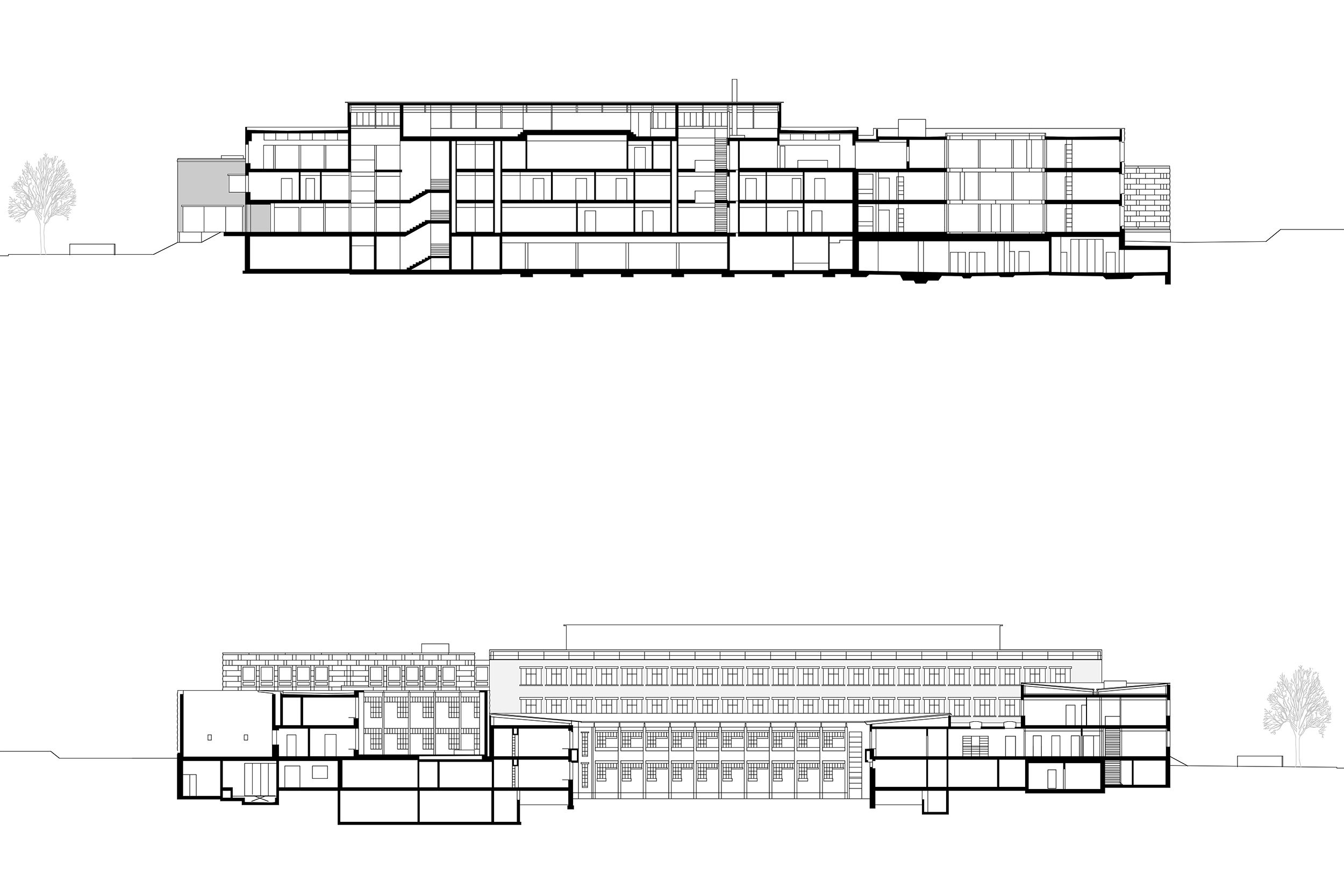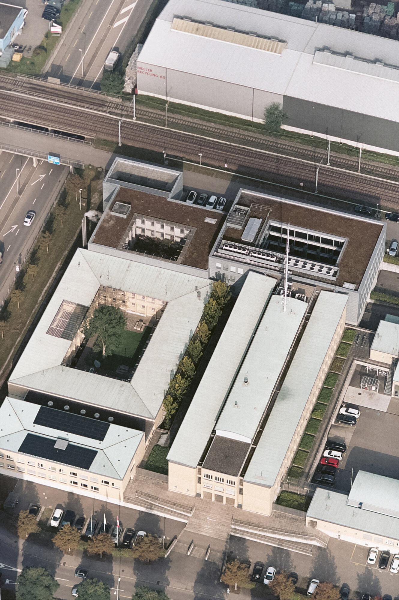 Das Justizzentrum des Kantons Thurgau liegt im Gewerbegebiet nahe an der Autobahnauffahrt. Die Erweiterung der Polizeibüros und der Zellenanlage erfolgt gegen Norden zu den Bahngleisen hin. Die drei Annexbauten mit der Polizei, dem Gefängnis- und dem Spazierhof schreiben das postmoderne Konglomerat der bestehenden Anlage weiter. Der begrünte Bürohof kann in den Pausen betreten werden und belichtet über eine grosszügig verglaste Fassade die Korridore der Polizei. Der Spazierhof des Gefängnisses ist mit einem Spielfeldbelag versehen und will als Sporthof ein möglichst positives Nutzungsszenario aufbauen. Der Gefängnishof versucht, mit einer dichten Begrünung über alle Jahreszeiten als vielschichtiger Gartenhof zu wirken. Gegen aussen nimmt die Kassettenfassade aus Kupfertitanzinkblech die Materialität des Gewerbegebiets auf. Mit einem tiefgezogenen Paneel wird für jedes Gebäudeteil eine spezifische Rhetorik entwickelt. Im Grau des Gewerbegebiets erhascht der Zugreisende die Bedeutung von Polizei, Gefängnis und Spazierhof.