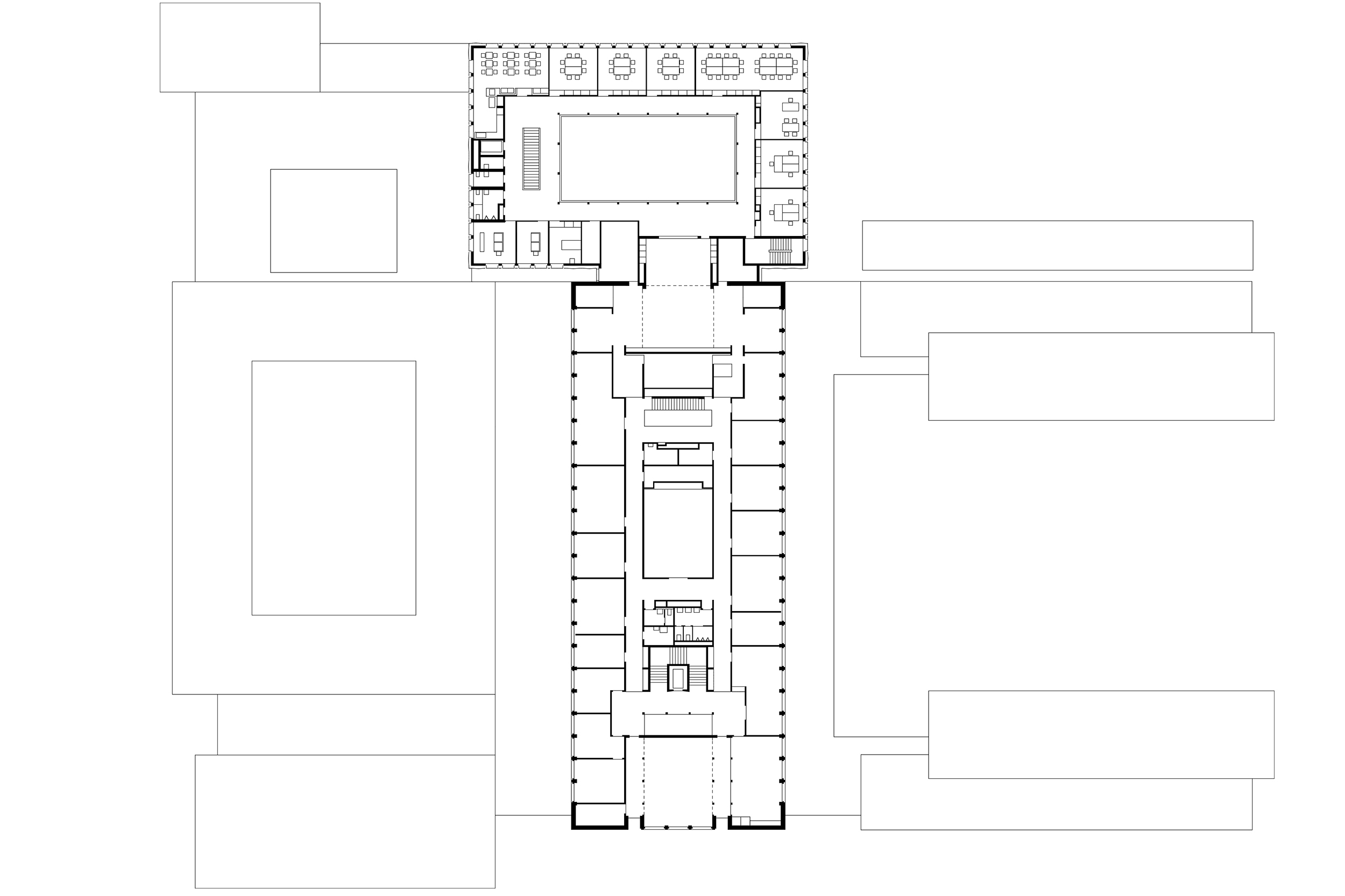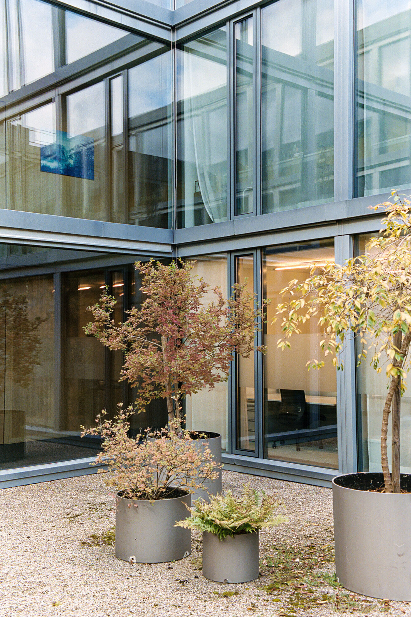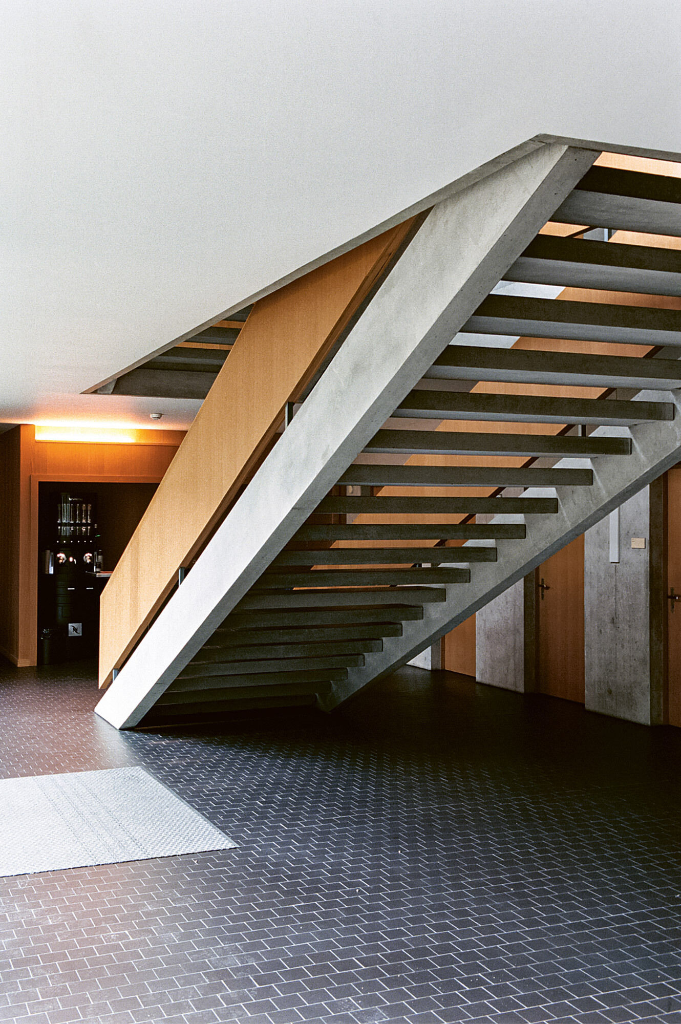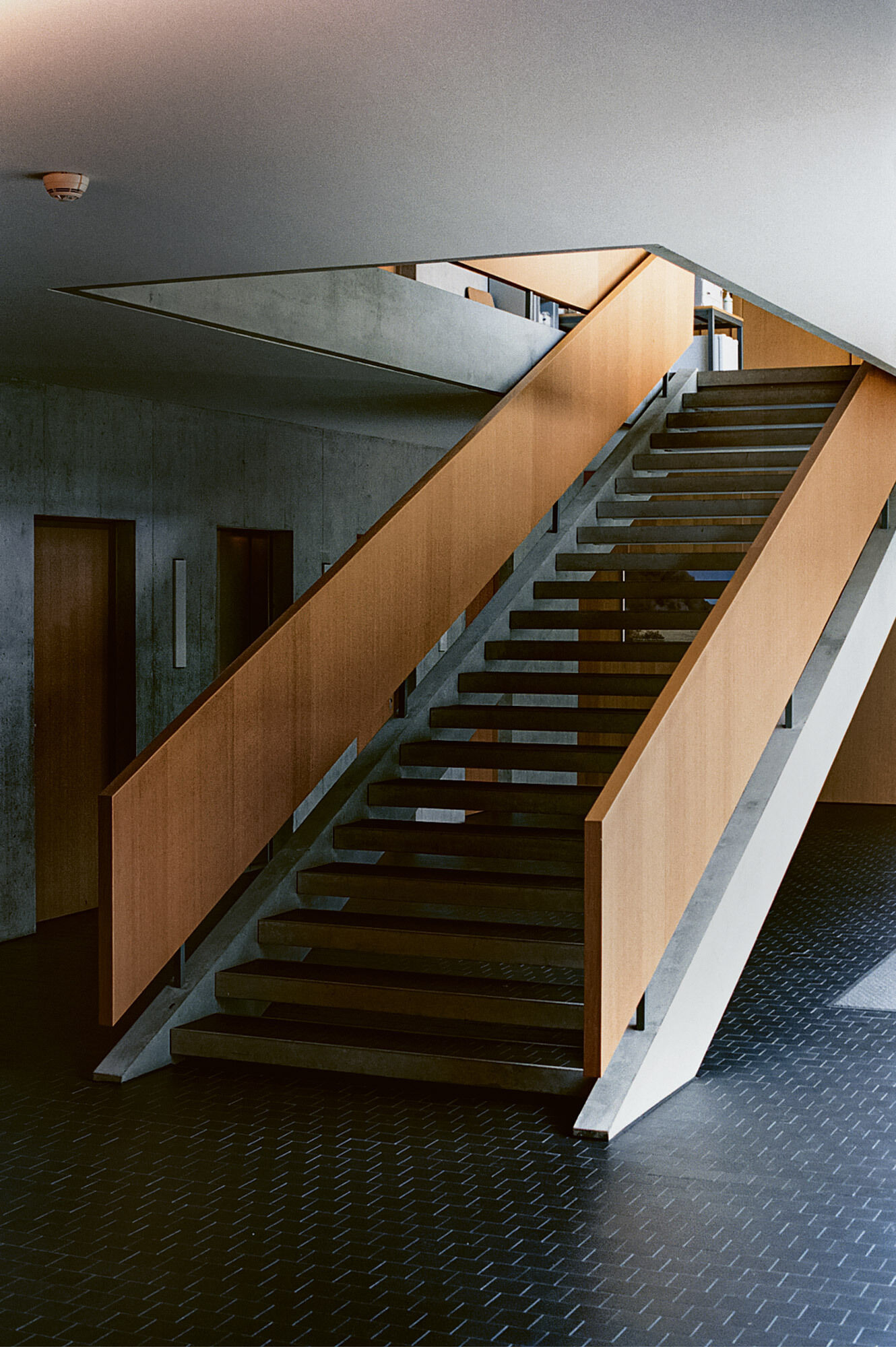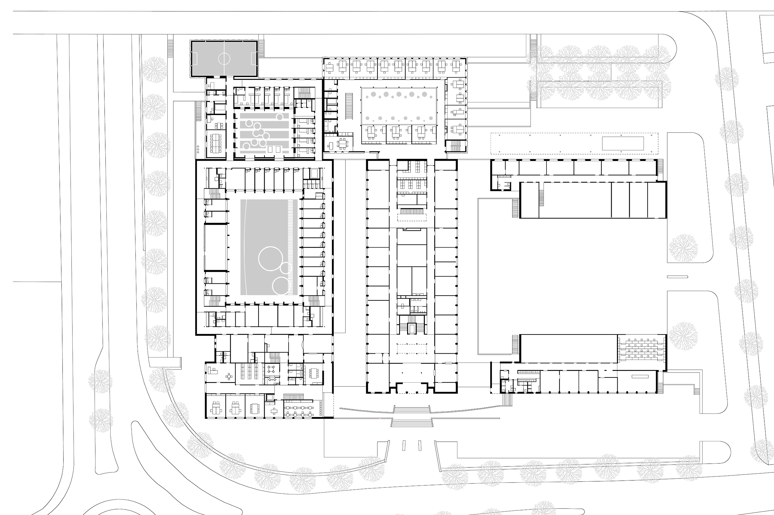 Das Justizzentrum des Kantons Thurgau liegt im Gewerbegebiet nahe an der Autobahnauffahrt. Die Erweiterung der Polizeibüros und der Zellenanlage erfolgt gegen Norden zu den Bahngleisen hin. Die drei Annexbauten mit der Polizei, dem Gefängnis- und dem Spazierhof schreiben das postmoderne Konglomerat der bestehenden Anlage weiter. Der begrünte Bürohof kann in den Pausen betreten werden und belichtet über eine grosszügig verglaste Fassade die Korridore der Polizei. Der Spazierhof des Gefängnisses ist mit einem Spielfeldbelag versehen und will als Sporthof ein möglichst positives Nutzungsszenario aufbauen. Der Gefängnishof versucht, mit einer dichten Begrünung über alle Jahreszeiten als vielschichtiger Gartenhof zu wirken. Gegen aussen nimmt die Kassettenfassade aus Kupfertitanzinkblech die Materialität des Gewerbegebiets auf. Mit einem tiefgezogenen Paneel wird für jedes Gebäudeteil eine spezifische Rhetorik entwickelt. Im Grau des Gewerbegebiets erhascht der Zugreisende die Bedeutung von Polizei, Gefängnis und Spazierhof.