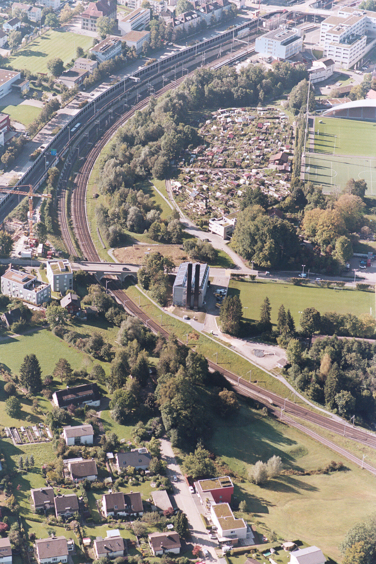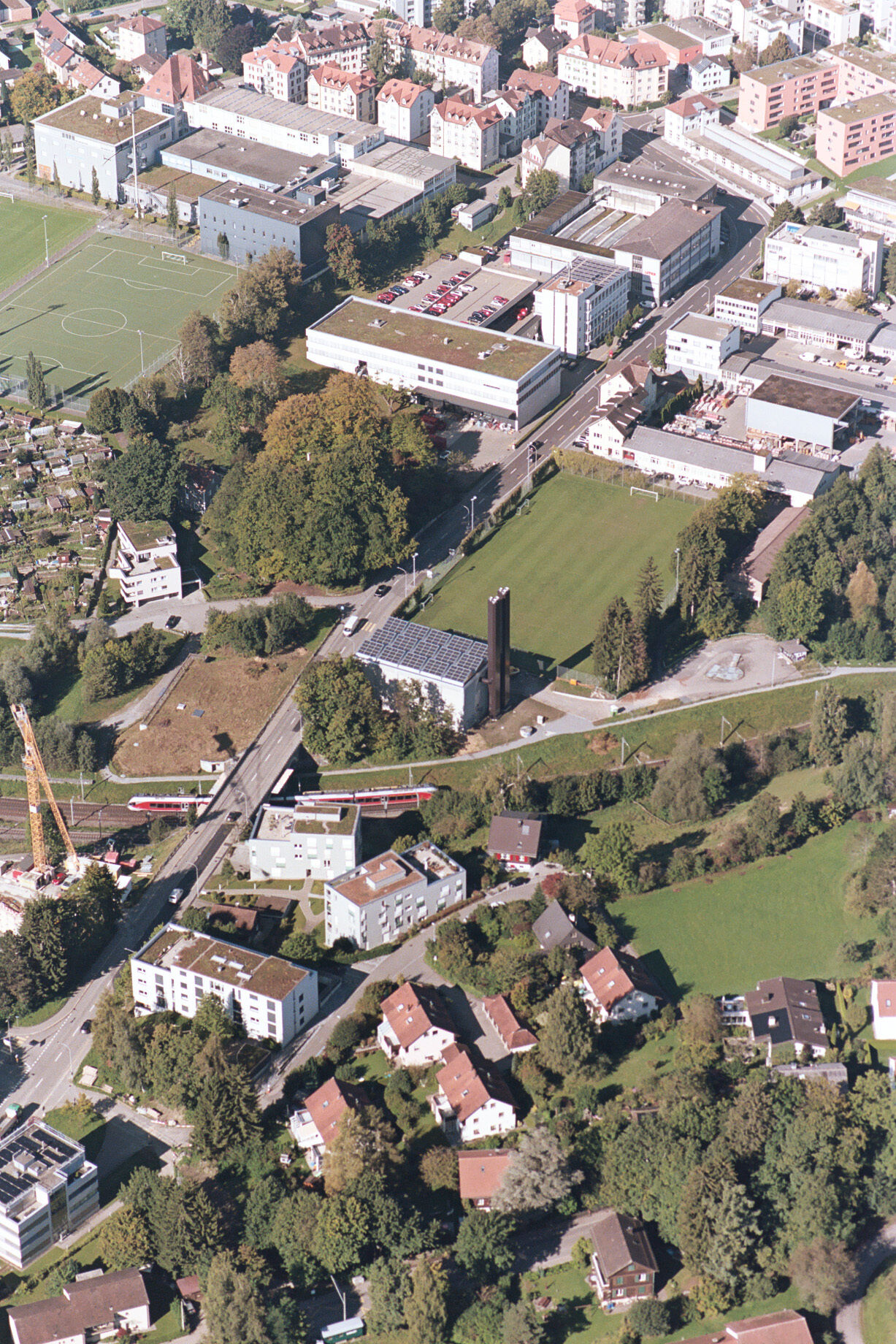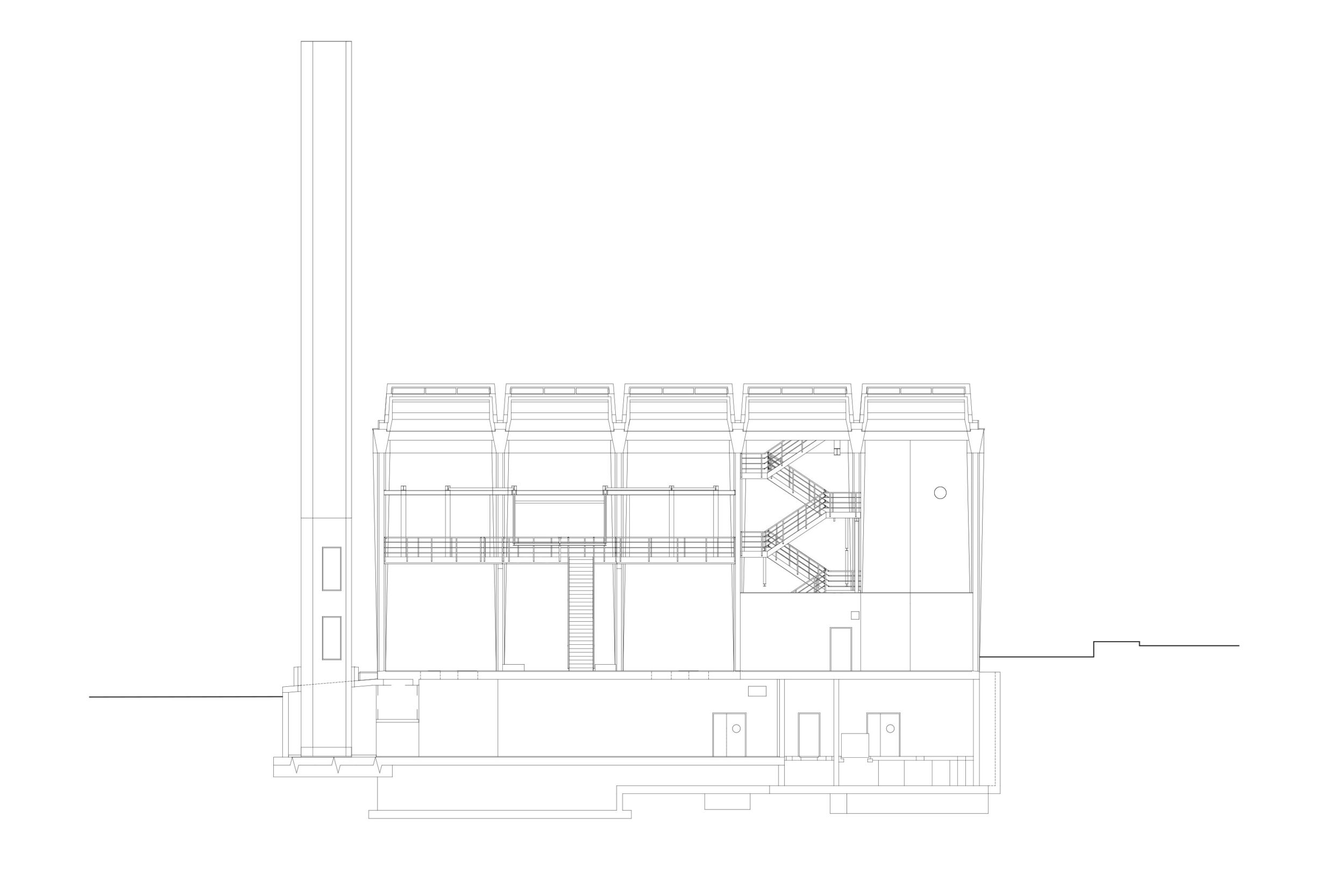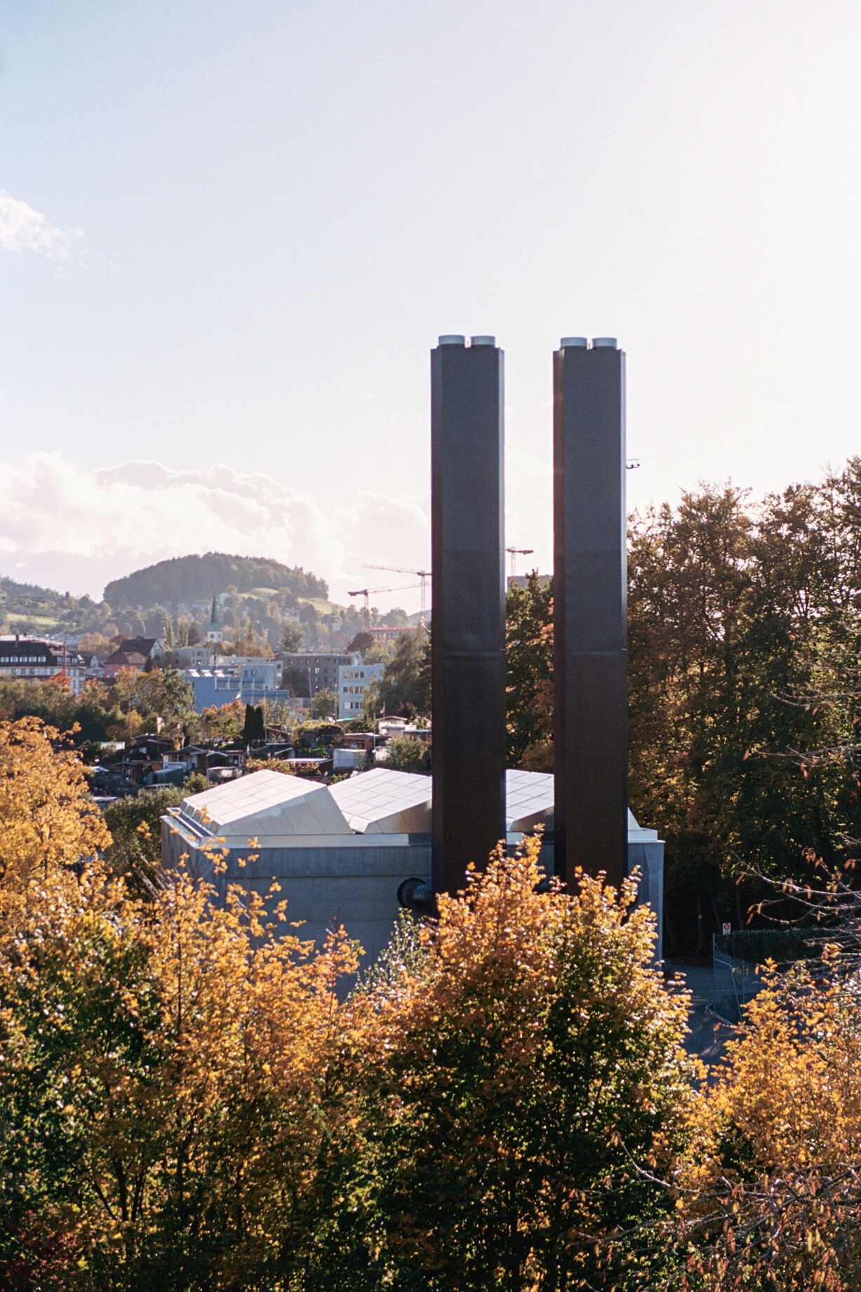 Die Fernwärmezentrale Lukasmühle ist die Spitzenlastzentrale für den östlichen Teil des St. Galler Fernwärmenetzes. Sie ist mit zwei Doppelflammkesseln und zwei Blockheizkraftwerk-Aggregaten bestückt. Das hoch installierte Gebäude wurde auf einem engen Restgrundstück zwischen Eisenbahn und Fussballfeld erstellt, sodass die Organisation der mehrstöckigen Untergeschosse und die damit zusammenhängende Baugrubenlogistik sehr anspruchsvoll waren. Der Hallenbau folgt dem Bausystem, das für die St. Galler Stadtwerke entwickelt worden ist. In der Lukasmühle liegt die Besonderheit bei den anspruchsvollen und eindrücklichen Einbauten aus Stahl, welche den technischen Unterhalt, die Medienführung und die Personensicherheit gewährleisten müssen. Für eine schlanke Gesamtwirkung der Kamine im städtischen Landschaftsraum ist eine spezifische Geometrie gezeichnet worden. Die beiden sechseckigen Stahlblechtürme übernehmen die Kaminstatik und fassen je drei Abgasrohre zusammen. Der untere Teil der Kaminstruktur wird für die Fassung der Zuluft nutzbar gemacht
