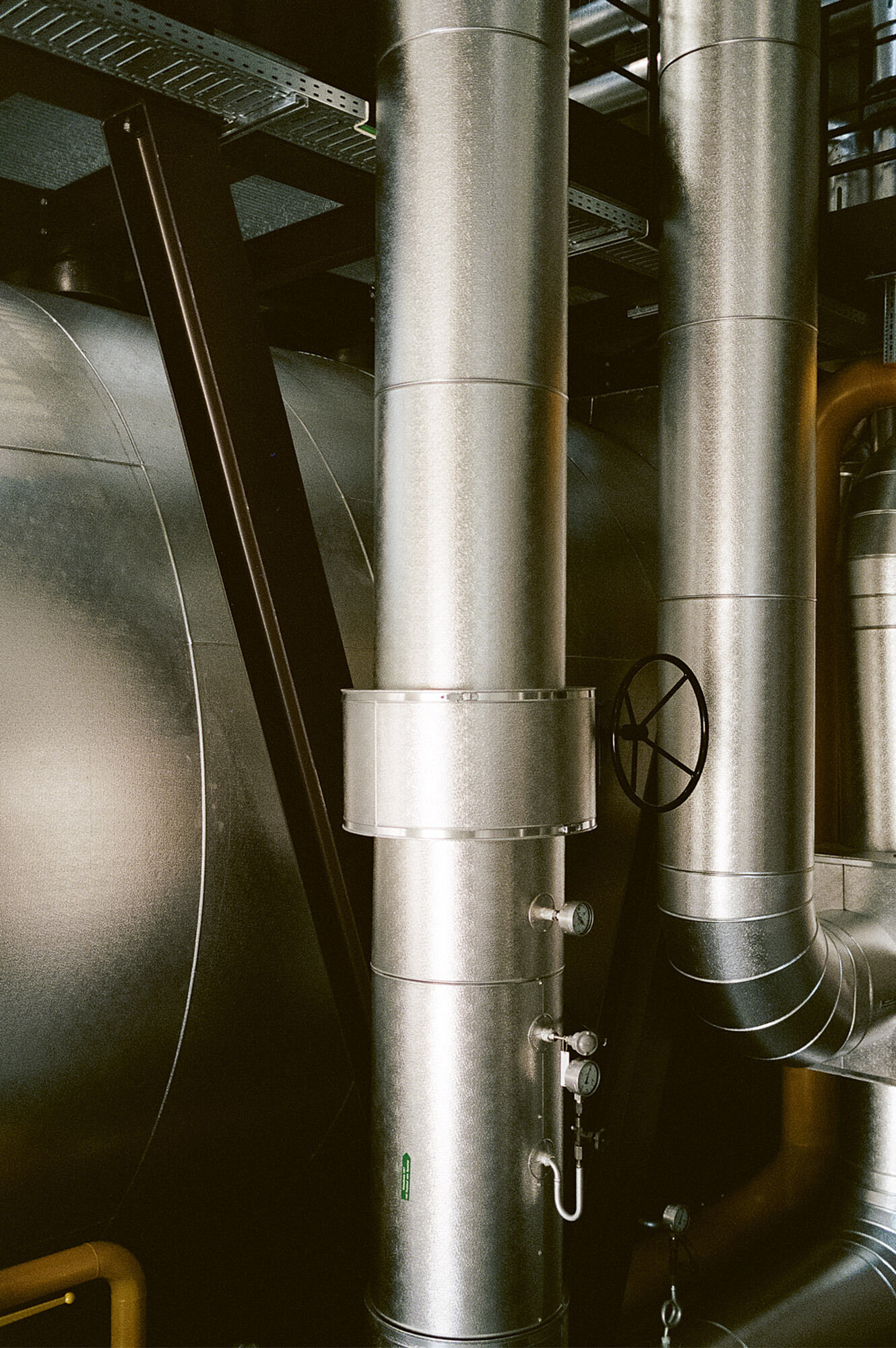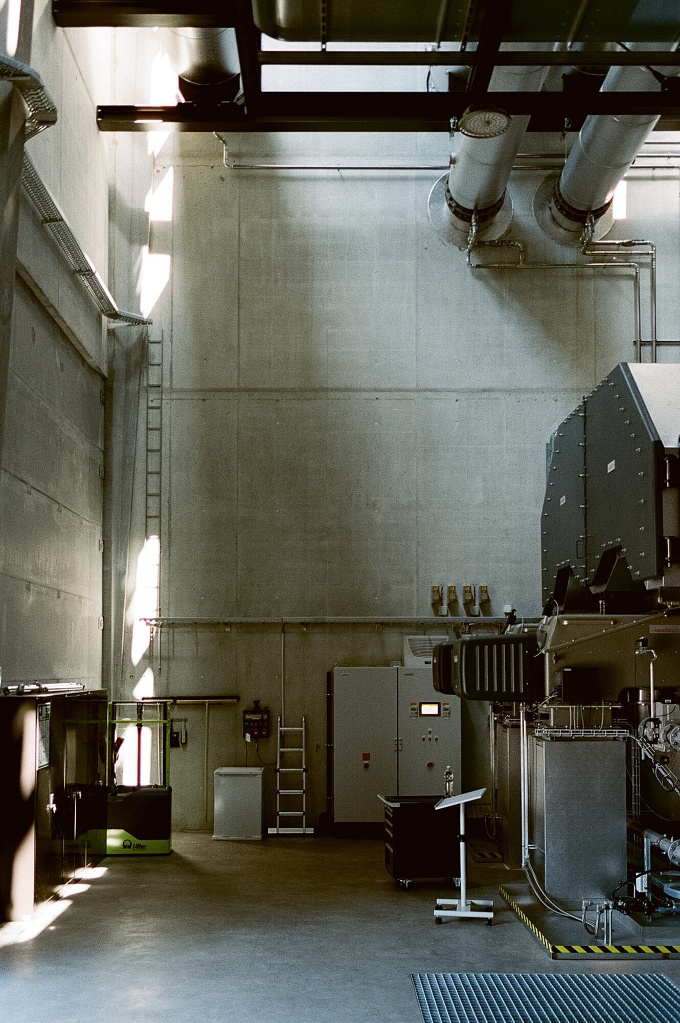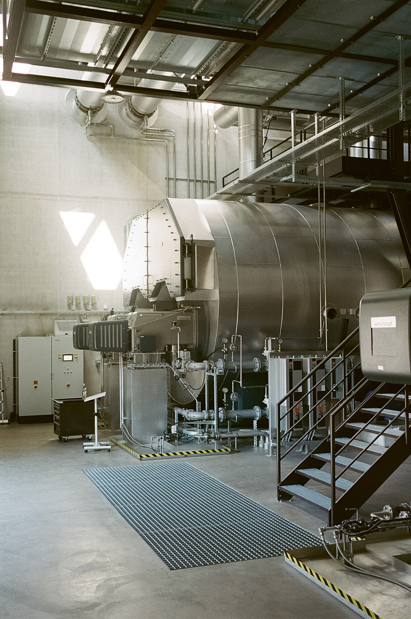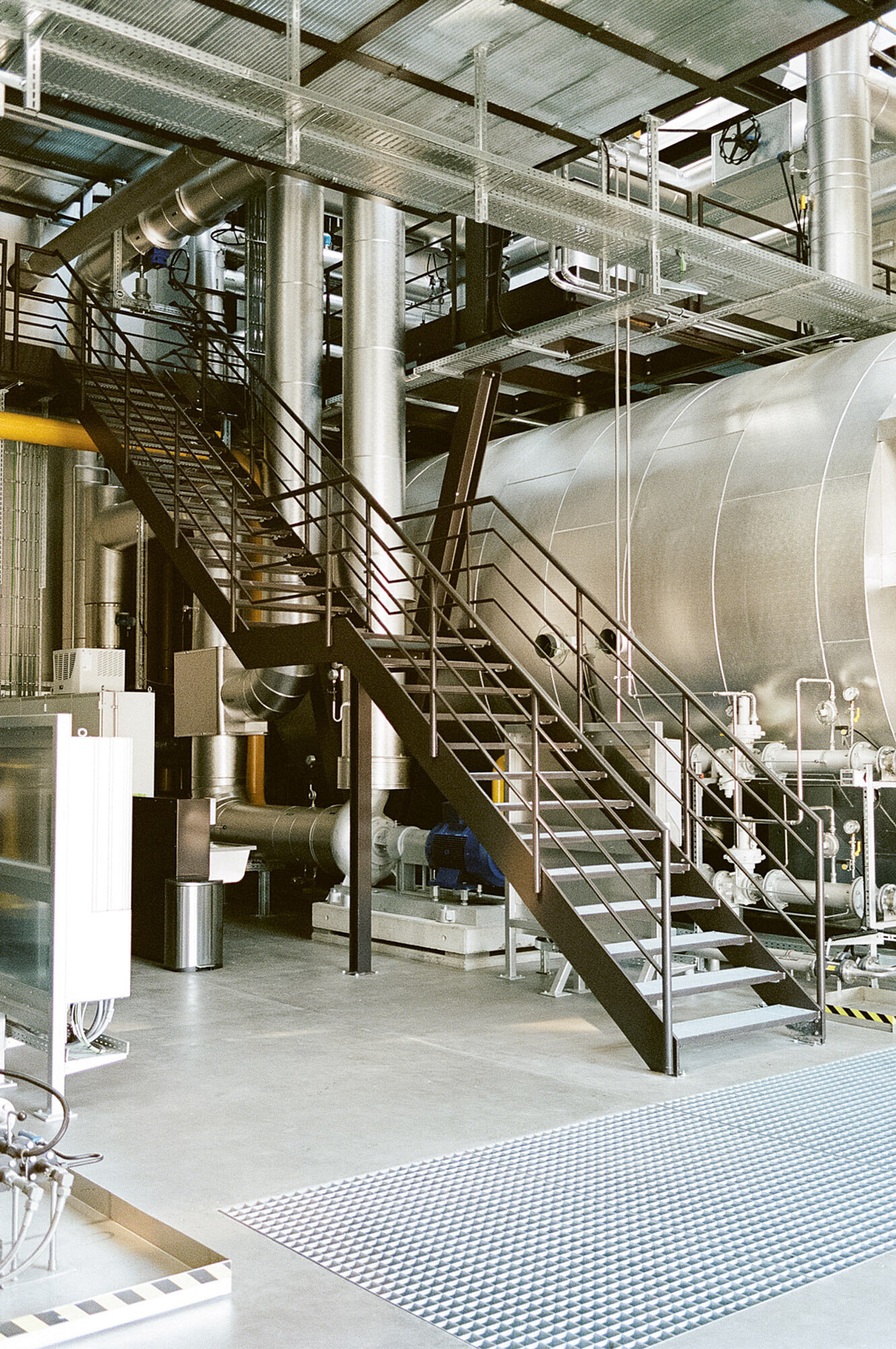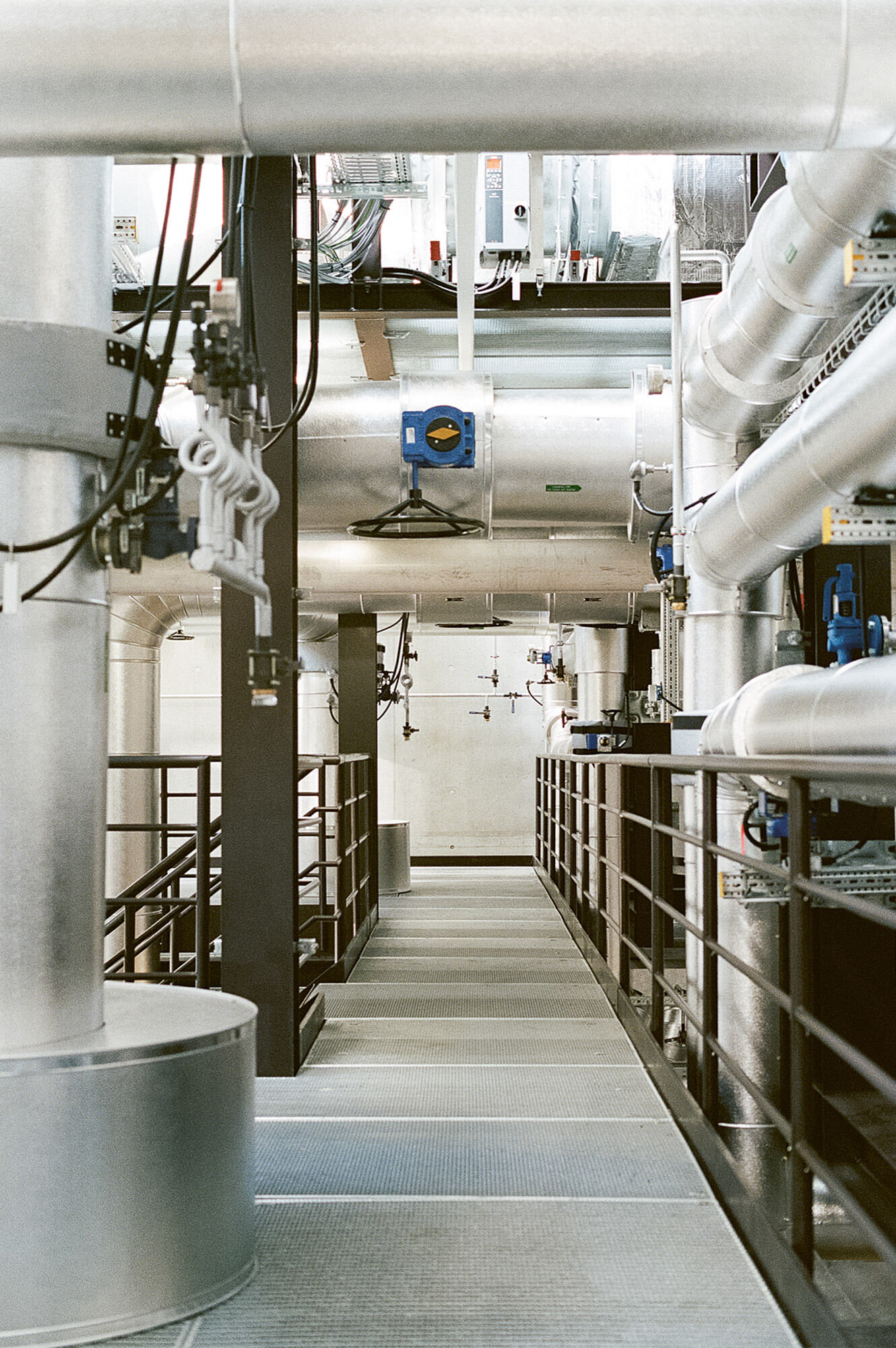 Die Fernwärmezentrale Lukasmühle ist die Spitzenlastzentrale für den östlichen Teil des St. Galler Fernwärmenetzes. Sie ist mit zwei Doppelflammkesseln und zwei Blockheizkraftwerk-Aggregaten bestückt. Das hoch installierte Gebäude wurde auf einem engen Restgrundstück zwischen Eisenbahn und Fussballfeld erstellt, sodass die Organisation der mehrstöckigen Untergeschosse und die damit zusammenhängende Baugrubenlogistik sehr anspruchsvoll waren. Der Hallenbau folgt dem Bausystem, das für die St. Galler Stadtwerke entwickelt worden ist. In der Lukasmühle liegt die Besonderheit bei den anspruchsvollen und eindrücklichen Einbauten aus Stahl, welche den technischen Unterhalt, die Medienführung und die Personensicherheit gewährleisten müssen. Für eine schlanke Gesamtwirkung der Kamine im städtischen Landschaftsraum ist eine spezifische Geometrie gezeichnet worden. Die beiden sechseckigen Stahlblechtürme übernehmen die Kaminstatik und fassen je drei Abgasrohre zusammen. Der untere Teil der Kaminstruktur wird für die Fassung der Zuluft nutzbar gemacht