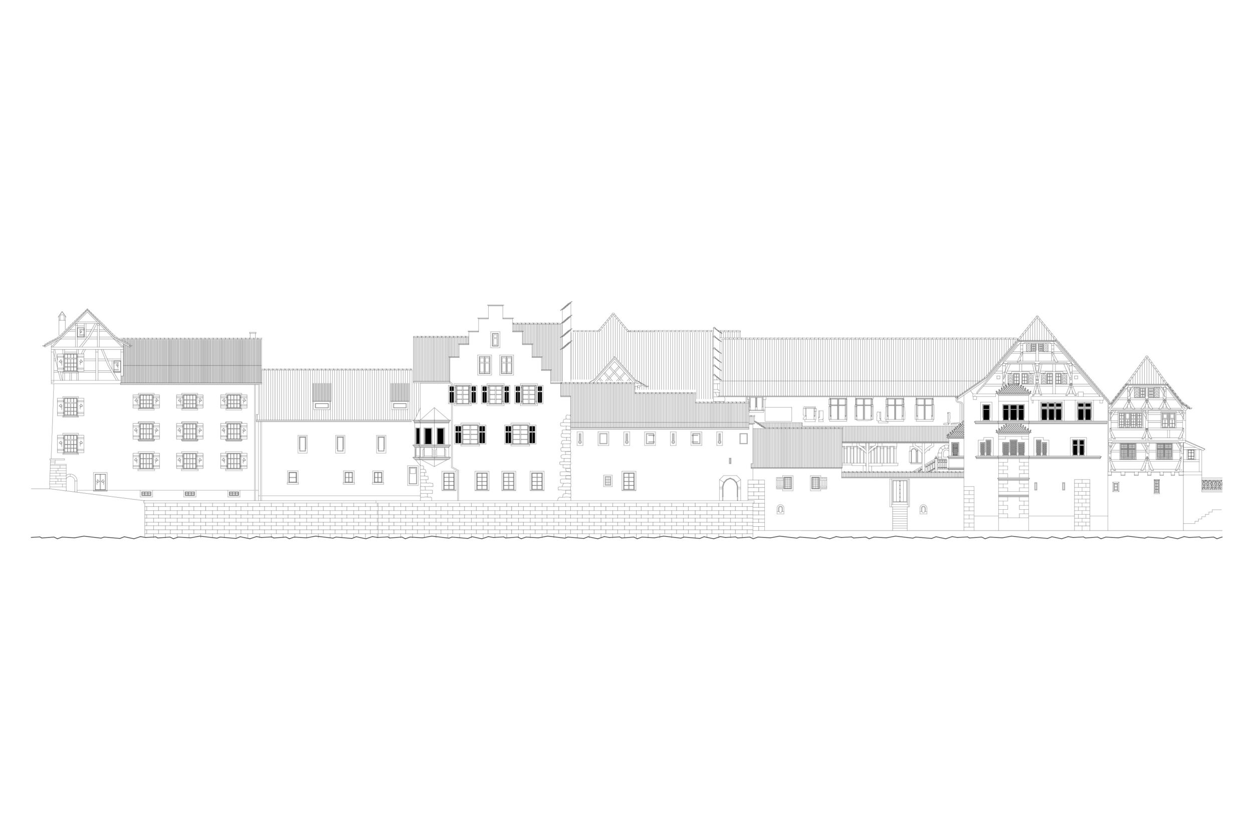 Das Kloster St. Georgen ist eine benediktinische Abtei, die im Mittelalter gegründet wurde und in der frühen Neuzeit kurz vor der Reformation ihre Hochblüte erlebt hat. Die Klosteranlage wurde schon 1525 aufgelöst und gelangte nach einigen Besitzerwechseln über die Gottfried Keller-Stiftung in den Besitz der Eidgenossenschaft, die nun über die Sommermonate ein Klostermuseum betreibt. Die Architekturarbeiten an der Klosteranlage starteten mit der Neugestaltung des Eingangsbereichs. Ein raumhaltiges Kassamöbel vereint auf engem Raum die Funktionen, die der Klosterwart als Gastgeber und Betreuer der Klosteranlage während der Öffnungszeiten zu erfüllen hat. Nach der Renovation der Rheinfassade und den Anpassungsarbeiten im Archiv entstand aus der Zustandsanalyse ein Unterhaltsplan. Die aufgestauten Unterhalts- und Instandsetzungsarbeiten konnten sodann kontinuierlich abgearbeitet werden.