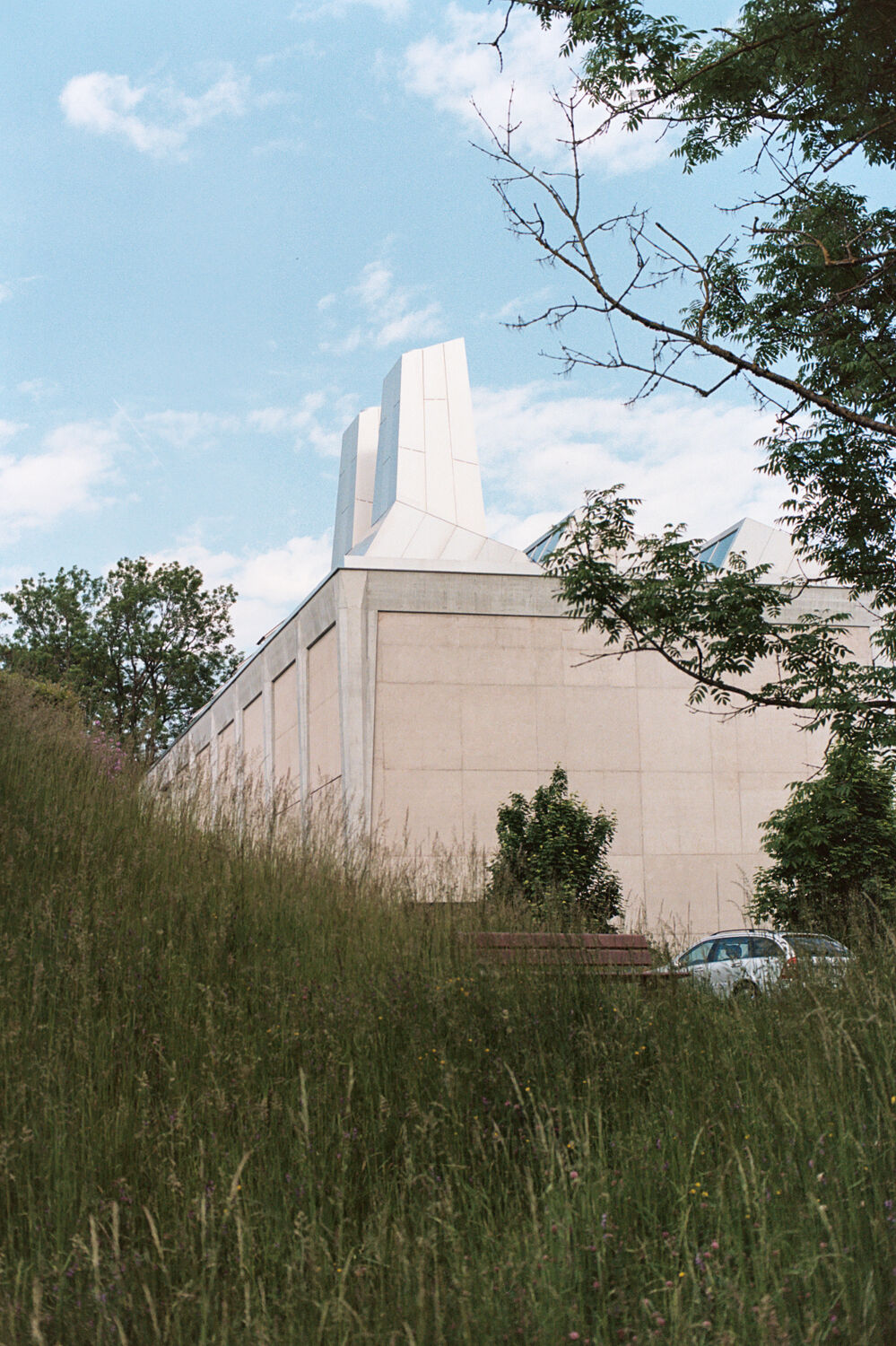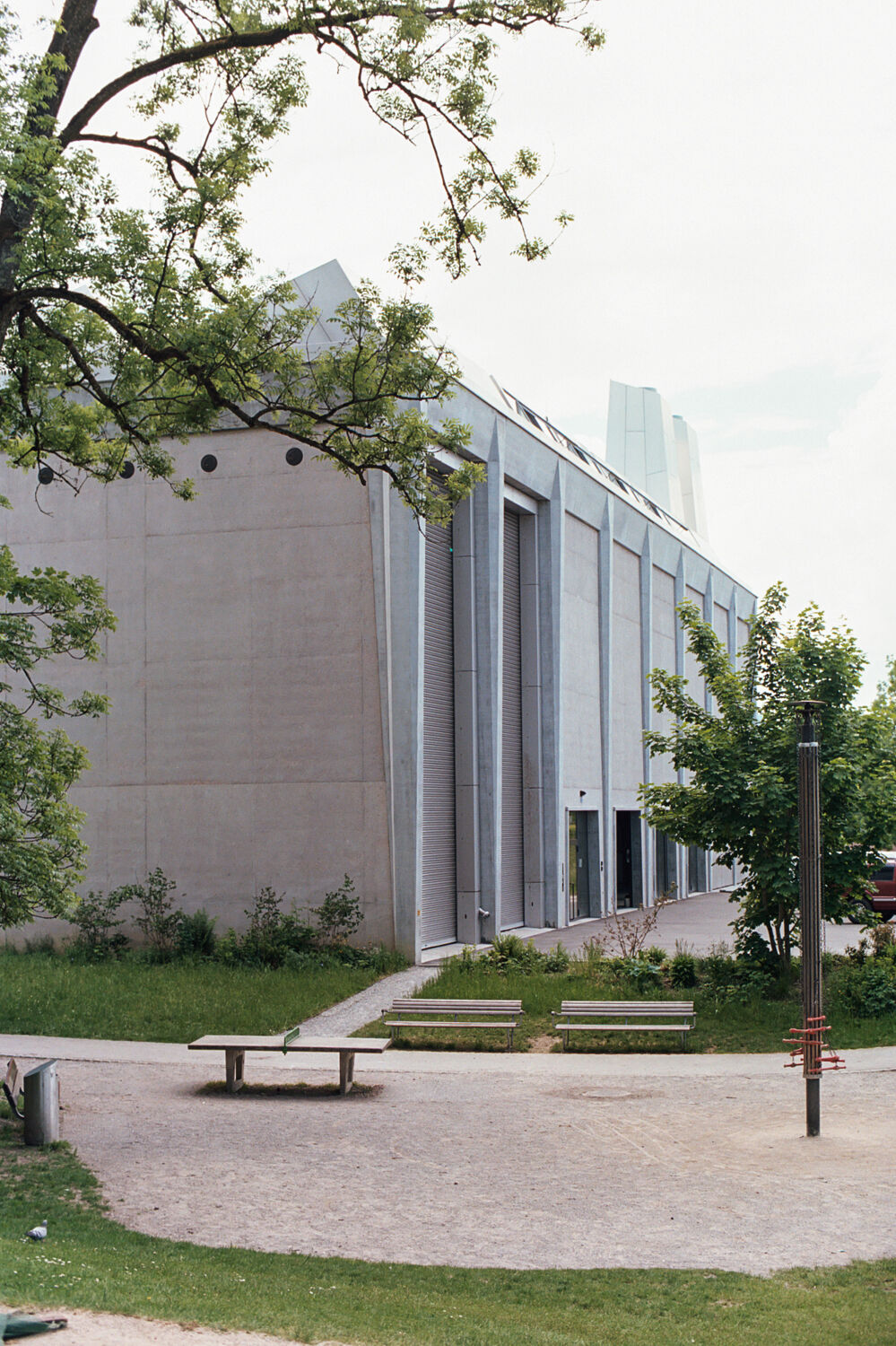 Die Spitzenlastzentrale liegt im Waldaupärkli des Stadtquartiers Lachen und dient der Betriebssicherheit des stetig wachsenden Fernwärmenetzes. Das Bausystem wurde für die Bauten der St. Galler Stadtwerke entwickelt, die im Rahmen der Energiestrategie 2050 erstellt werden. Es ist in der Fernwärmezentrale Lukasmühle ein zweites Mal eingesetzt und wäre auch auf das letztlich nicht realisierte Geothermiekraftwerk adaptiert worden. Ein Rahmentragwerk aus hochfestem Beton trägt eine Dachstruktur, die auf einem Quadratraster von sechs Metern aufgebaut ist. Die Shedaufbauten mit integrierter Photovoltaik sind mit dünnen Betonschalen konstruiert. In der Fassade ermöglicht das System den Einbau von unterschiedlichen Ausfachungen. In der Waldau wurde zum Wohnquartier hin eine ungedämmte Schallschutzmauer benötigt, wofür Mischabbruch-Recyclingbeton verwendet wurde.