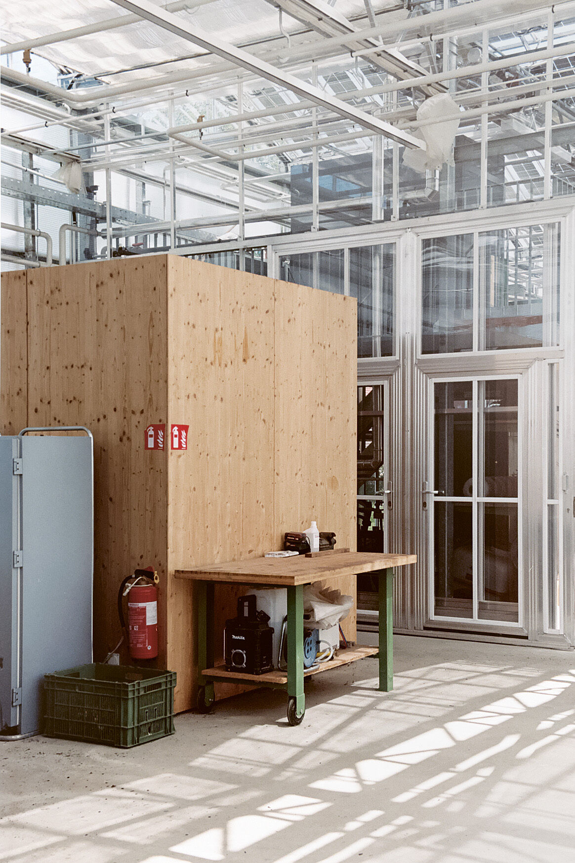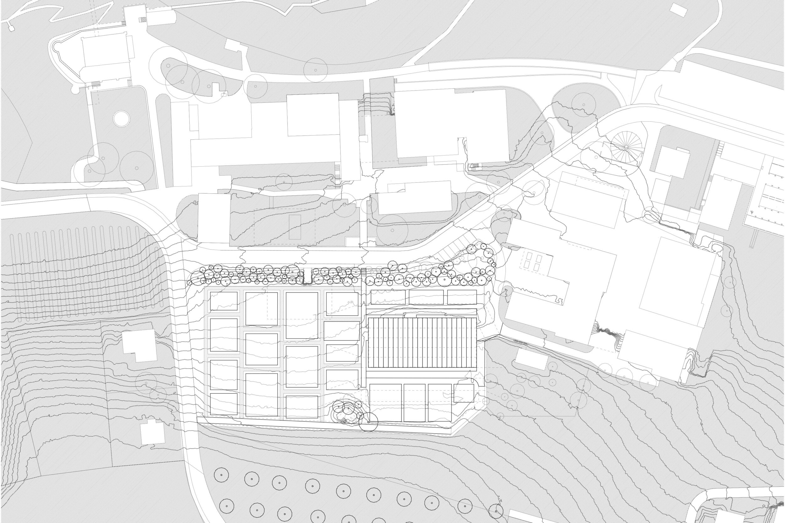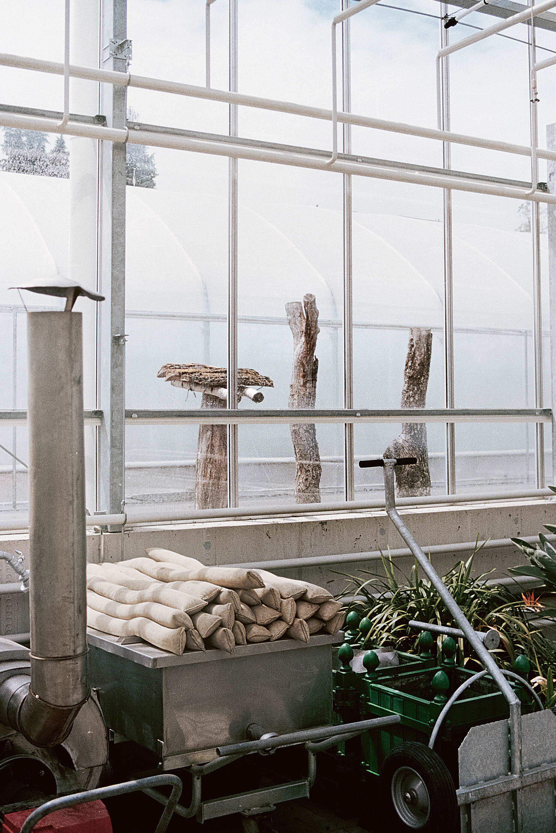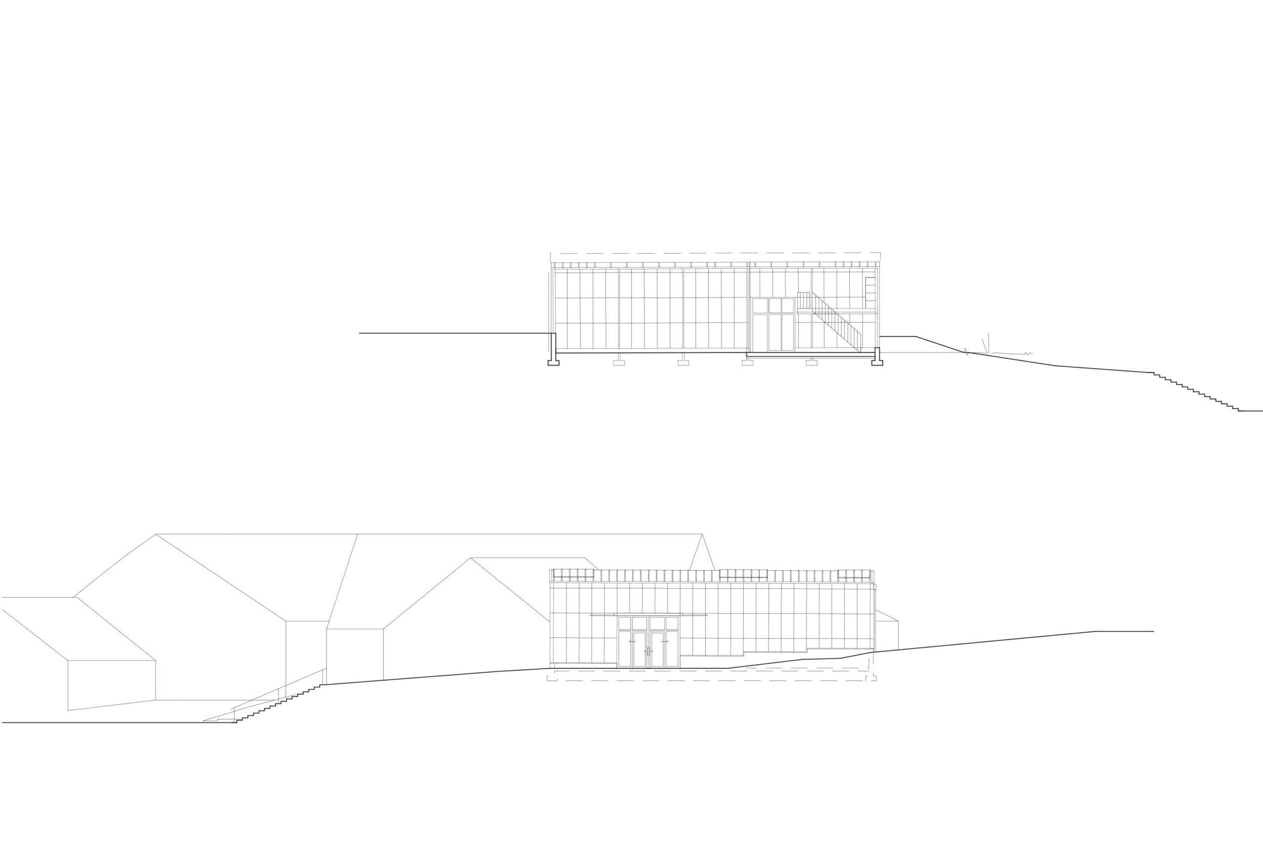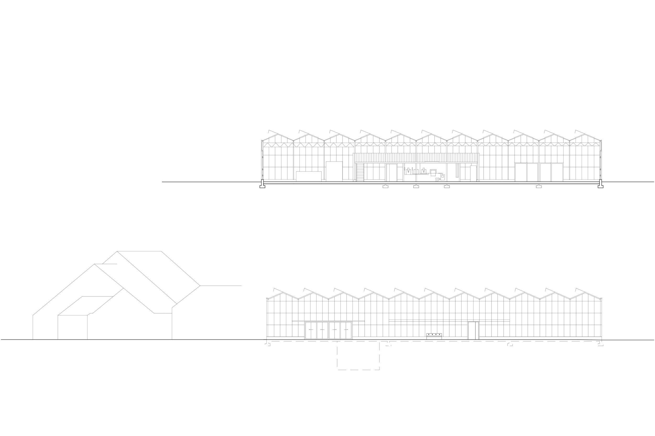 Die Gärtnerei auf dem Arenenberg ist eine Ausbildungshalle für zukünftige Landwirte und weitere Berufsgattungen. Zudem werden hier die Pflanzungen für das Schloss- und Gutshofareal kultiviert. Das Wettbewerbsprojekt sah eine spezifische Werkhof- und Gewächshausarchitektur vor. Aus politischen Gründen war dann aber ein preisgünstigerer Bau gefordert, der dem Bild der Ökonomie im Gemüsebau eher entspricht. So wurde ein importiertes Gewächshaussystem an die Topografie und an die Nutzungen angepasst. Das Dach ist mit Verbundglas gesichert, die Verschattung über der Ausbildungszone erfolgt mit Solarpaneelen. Die Halle ist in kleine Nutzungseinheiten mit unterschiedlichen Temperaturzonen für die jeweiligen Ausbildungseinheiten unterteilt. Die Orangerie dient auch als Eventraum.