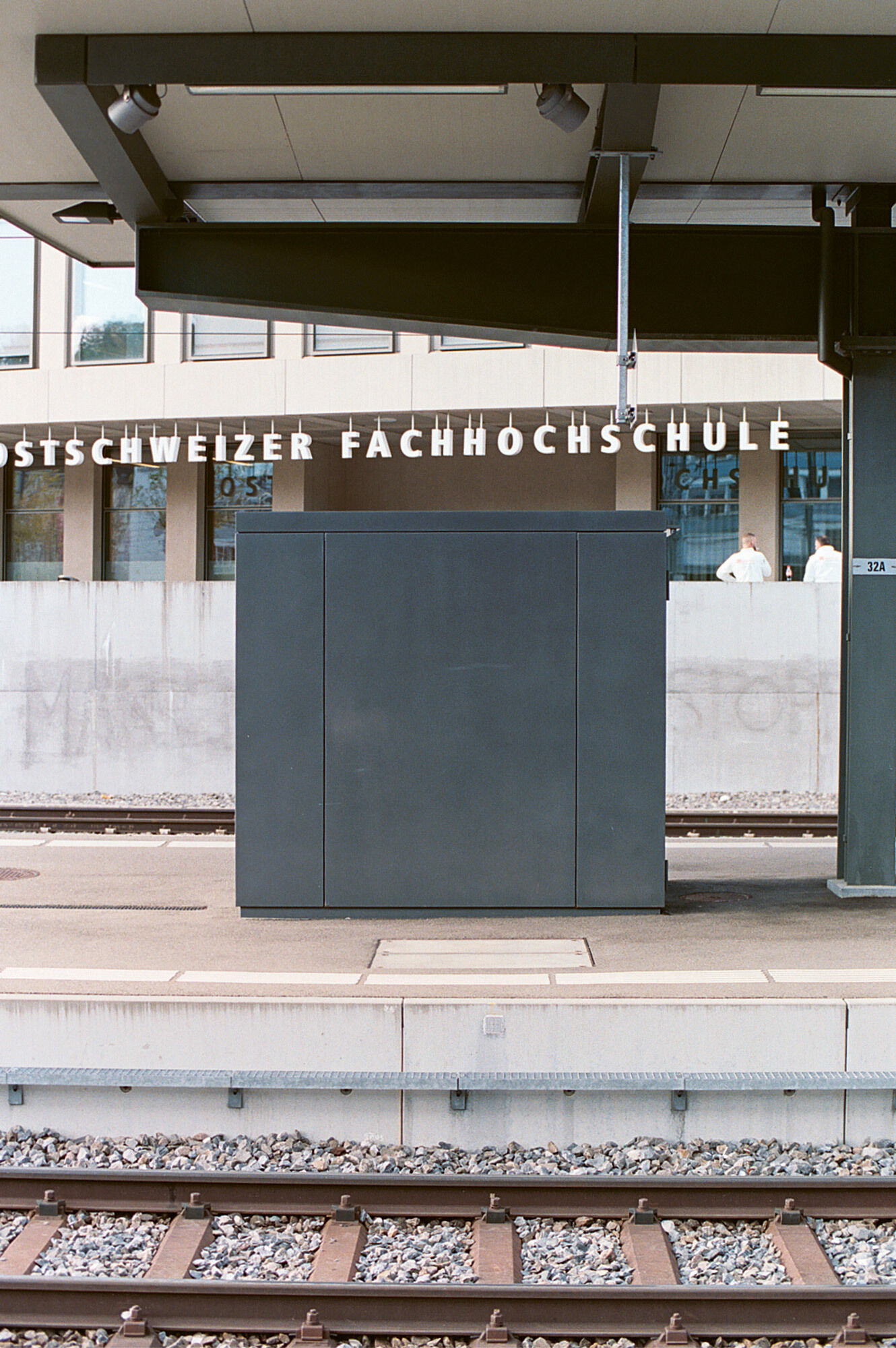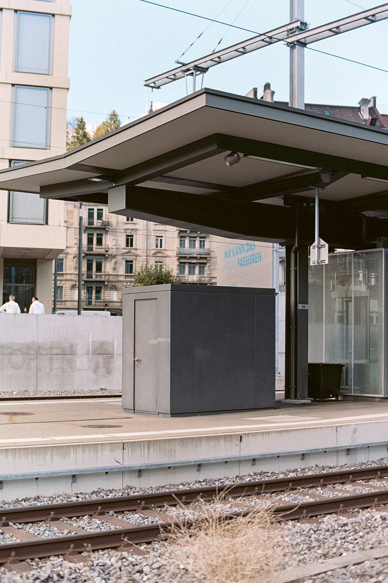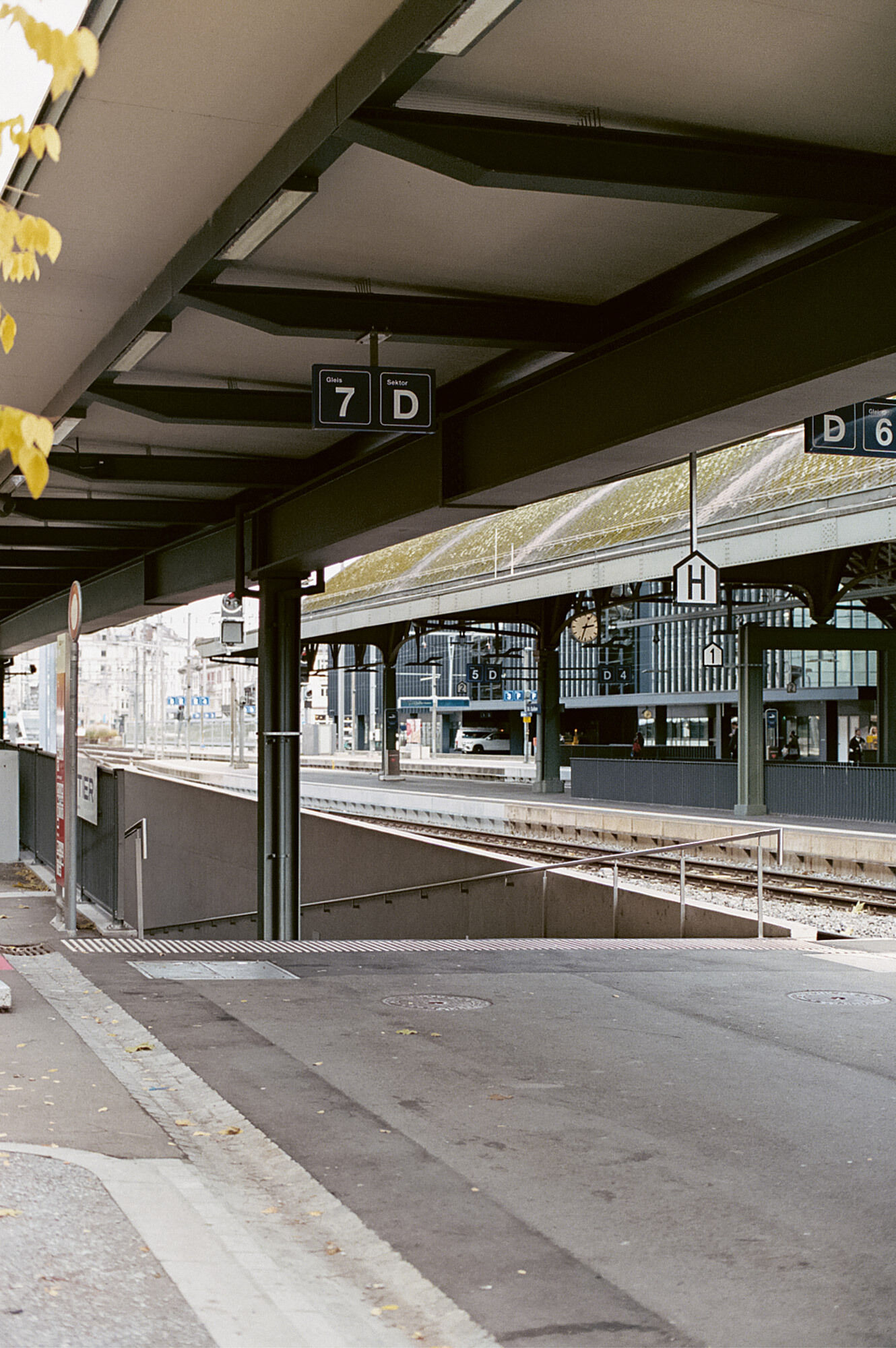 Mit dem neuen Perrondach für die Geleise 6 und 7 wird von der Rosenbergstrasse ein neuer Zugang zum Bahnhof geschaffen. Die östliche Personenunterführung wird über eine grosszügige Rampe, die unter dem neuen Perrondach verläuft, auf attraktive Weise zugänglich gemacht. Das Perrondach baut auf einer regelmässigen Reihung von elf Stützen auf, welche die Dachstruktur trotz der Rampen und Treppenabgänge ohne einen Wechsel tragen können. Dafür ist ein Sützenabstand von über 15 Metern eingeführt. Ein mittiger Torsionsträger, der als Doppel-T-Träger ausgebildet ist, verbindet die Stützen und trägt die Sekundärträger, die als Querträger die Breite des Dachs aufspannen. An ihren Enden liegt je ein Längsträger auf, der das Tragwerk zusammenbindet, gleichzeitig aber auch als Medienkanal dient. Die Holzbauelemente liegen im Zentrum auf den Querträgern und am Rand auf dem Medien-