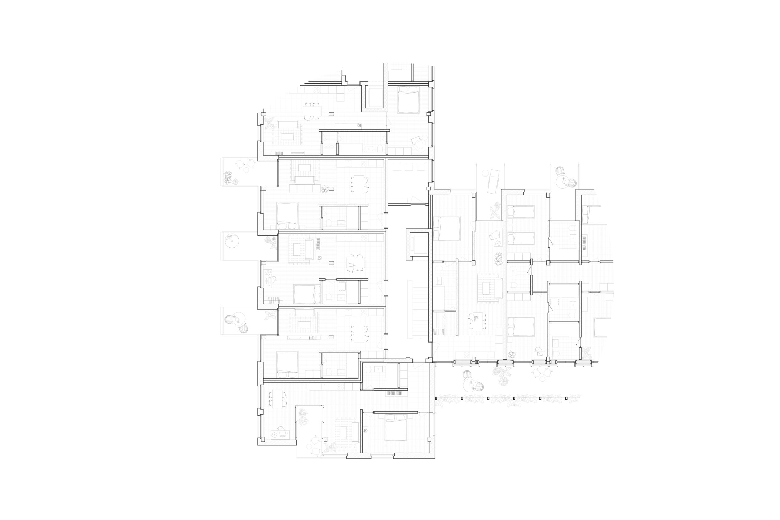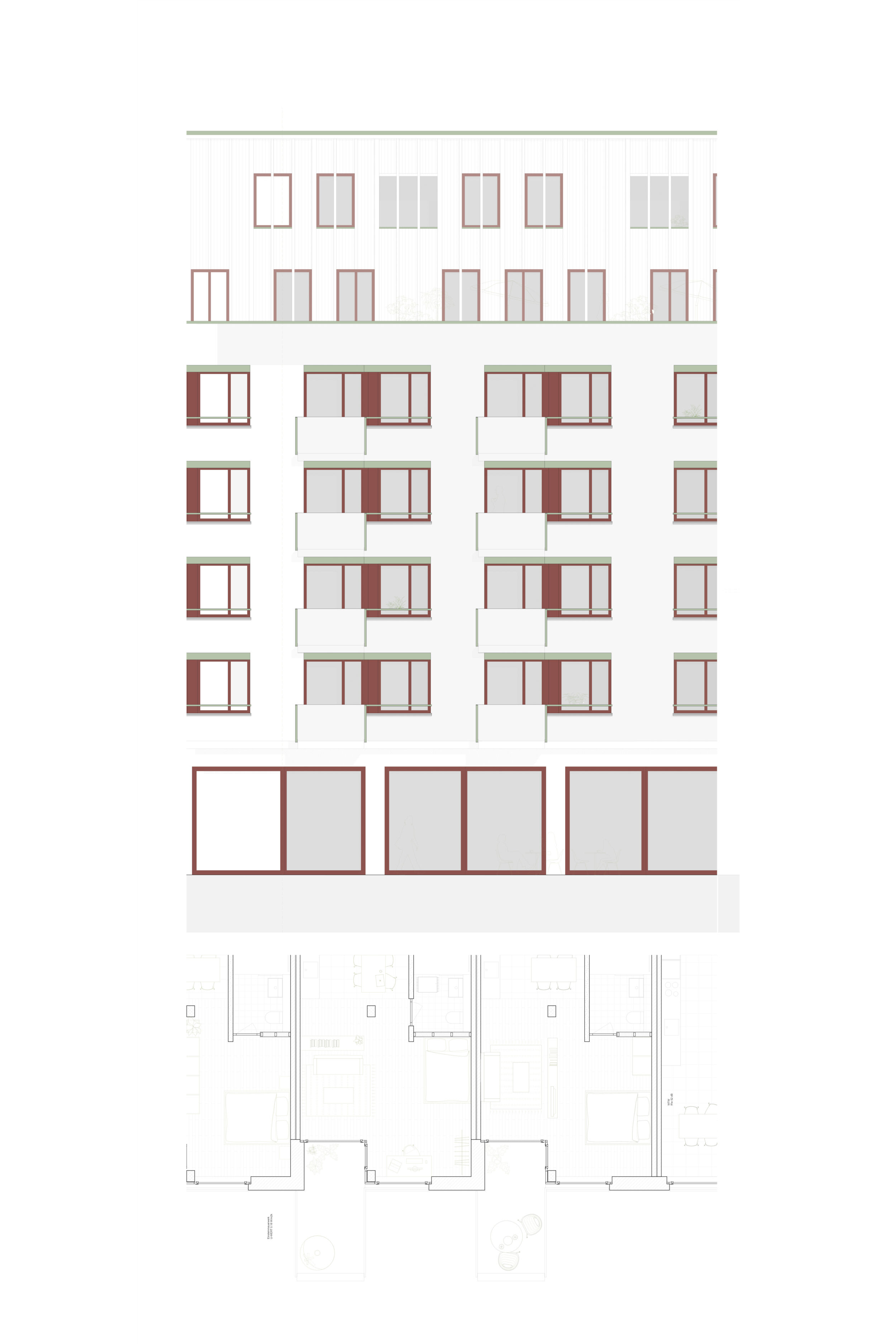Das Projekt ‘Ardilla’ schlägt ein städtisches Wohnhaus vor, das sich als dreiflügliges Gebäude in den von Blockrand-Fragmenten geprägten Kontext einbaut. Die Volumetrie des vielschichtig komponierten Hauses stärkt die unterschiedlichen städtebaulichen und freiräumlichen Situationen des Orts. Es verbindet die neue Wohndichte auf positive und lebendige Weise mit dem Quartier und wird so zu einem Katalysator für eine neue Qualität von Quartierleben.