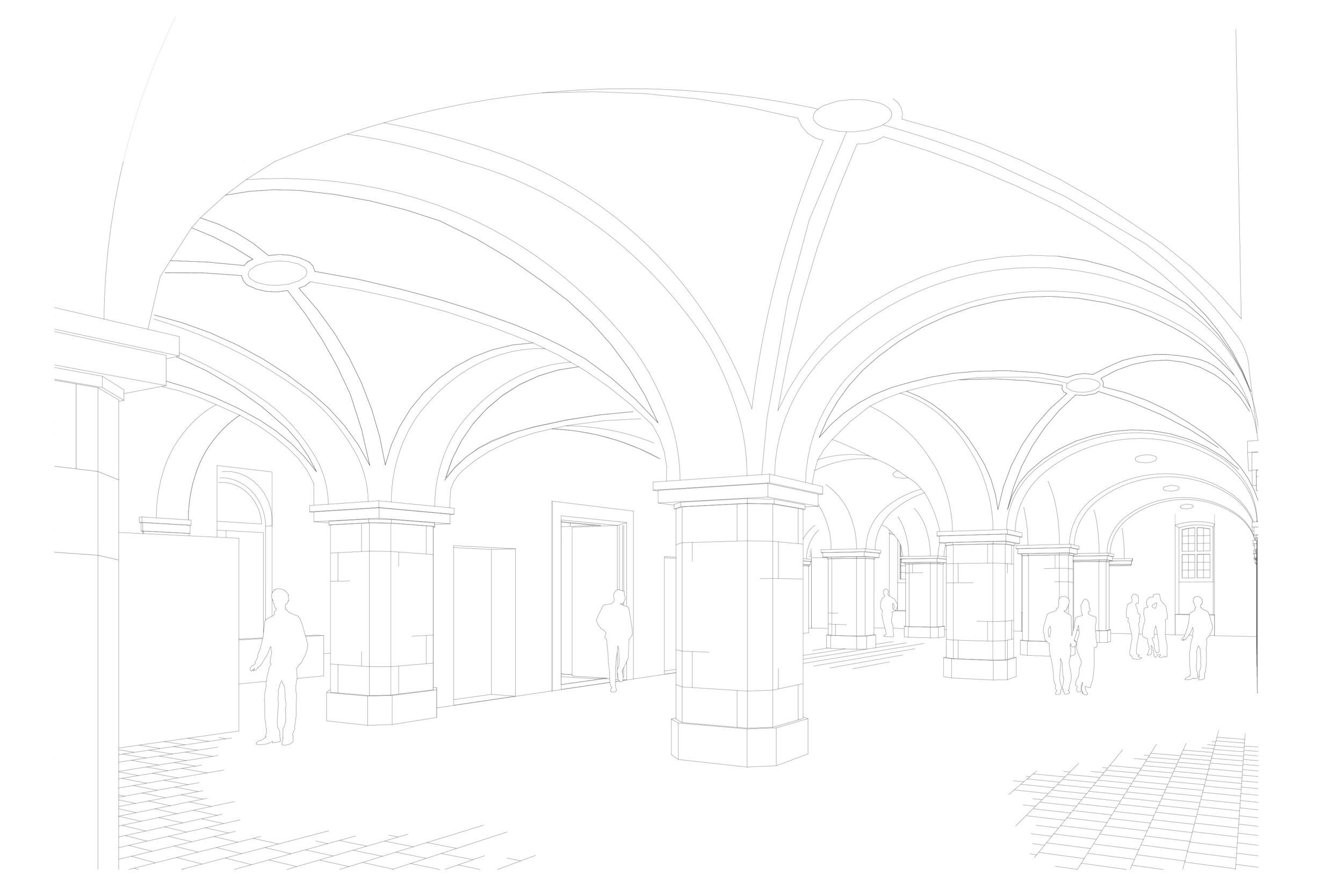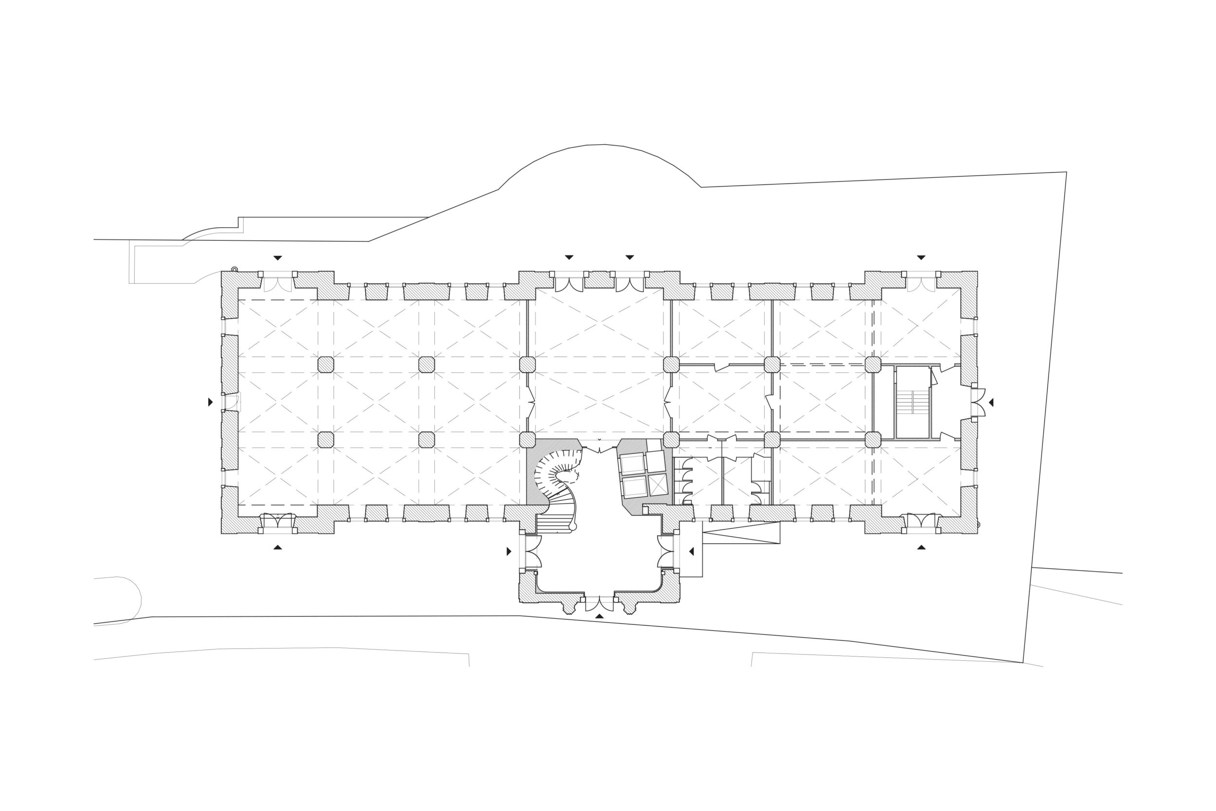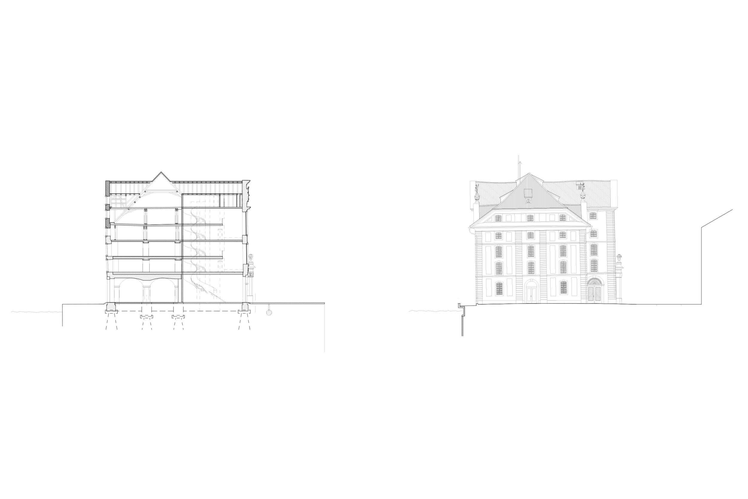 Das Kornhaus Rorschach ist neben dem Waaghaus und dem Salzhaus das letzte Speichergebäude, das noch am Rorschacher Hafenbecken steht. Es wurde zwischen 1746 und 1748 vom Architekten Johan Casper Bagnato aus Ravensburg für die Fürstabtei St. Gallen erbaut. Das Kornhaus umfasst vier Lagergeschosse, die über der steinernen Gewölbehalle des Erdgeschosses liegen. Die Tragstruktur der oberen Geschosse geht von steinernen Pfeilern, die bis ins 2. Obergeschoss reichen, sukzessive in eine reine Holzkonstruktion mit einem markanten Dachstuhl über. Die repräsentative Fassade von Bagnato findet ihren Höhepunkt im zur Stadt orientieren Mittelrisalit, wobei dahinter nur der schmale Treppenaufgang und ein Lastenzug positioniert waren. Das Kornhaus benötigt mittelfristig eine brandschutztechnische Sanierung, da sowohl die Fluchtwege wie auch die Brandabschnittsbildung in den Obergeschossen nicht mehr den aktuellen Normen entsprechen. Auch sind die technischen Installationen im Bereich Elektro und Heizung nicht mehr reglementskonform. Das Vorprojekt entwickelt ein neues Haupttreppenhaus, das den Hauptkörper möglichst wenig tangiert und im Mittelrisalit auf effiziente Weise Serviceräumlichkeiten erschliessen kann. Damit sollen die Obergeschosse zukünftig auf unterschiedliche und flexible Weise bespielt werden können. Das Kornhaus hat sich seit dem Bau um mehr als einen halben Meter abgesenkt und dabei auch eine beachtliche Schieflage entwickelt. Zudem wurde mit dem Aufschütten der neuen Uferpromenade das Kornhaus nochmals weiter in das Terrain gedrückt. Es ist das Ziel des Projekts, dass die Räumlichkeit der Gewölbehalle im Erdgeschoss wieder möglichst in seiner Gesamtheit erfahren werden kann. Der originale Boden ist wegen der Absenkung aber alle paar Jahre vom Hochwasser betroffen. Es sind unterschiedliche Konzepte vorhanden, wie mit dieser Situation umgegangen werden könnte.